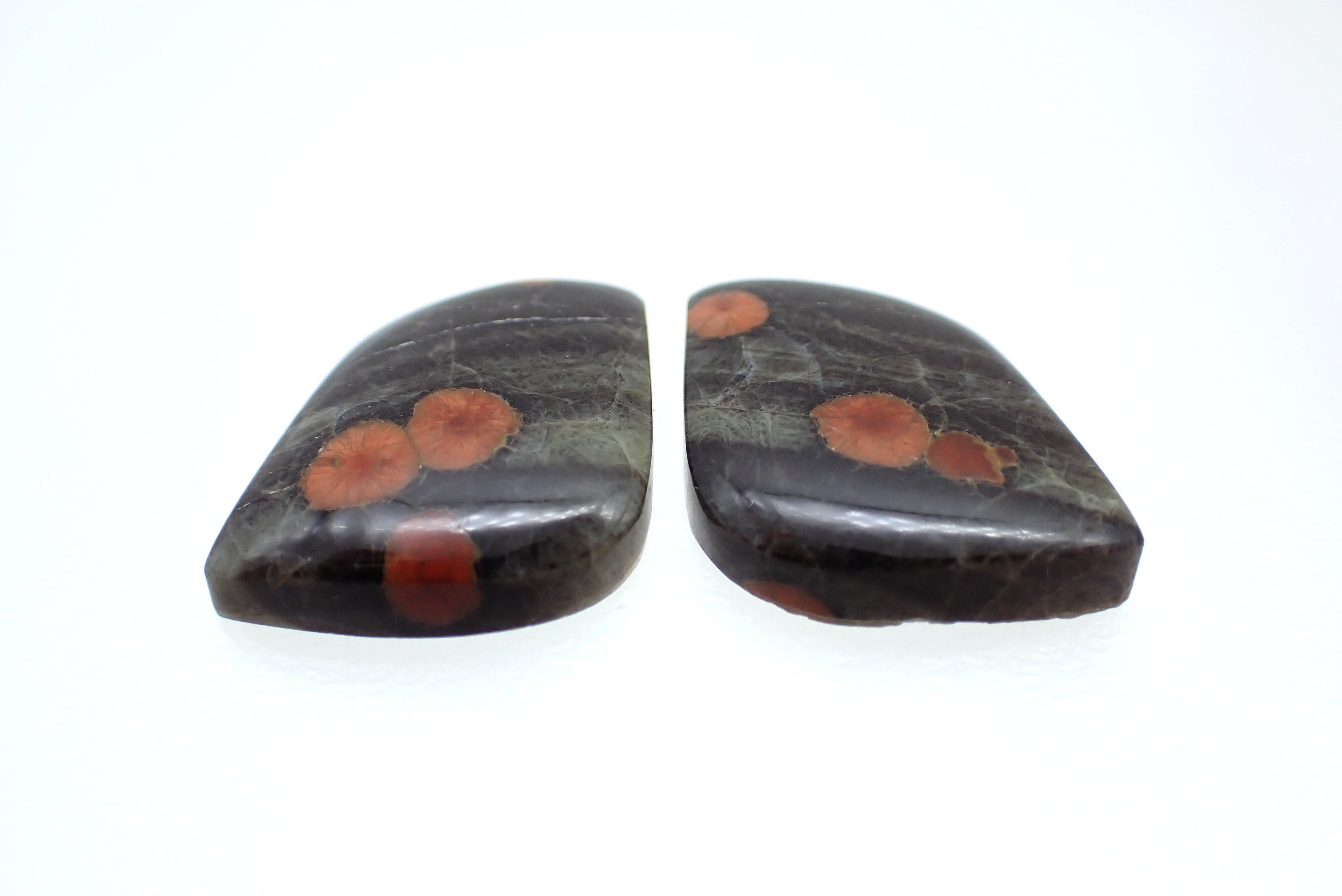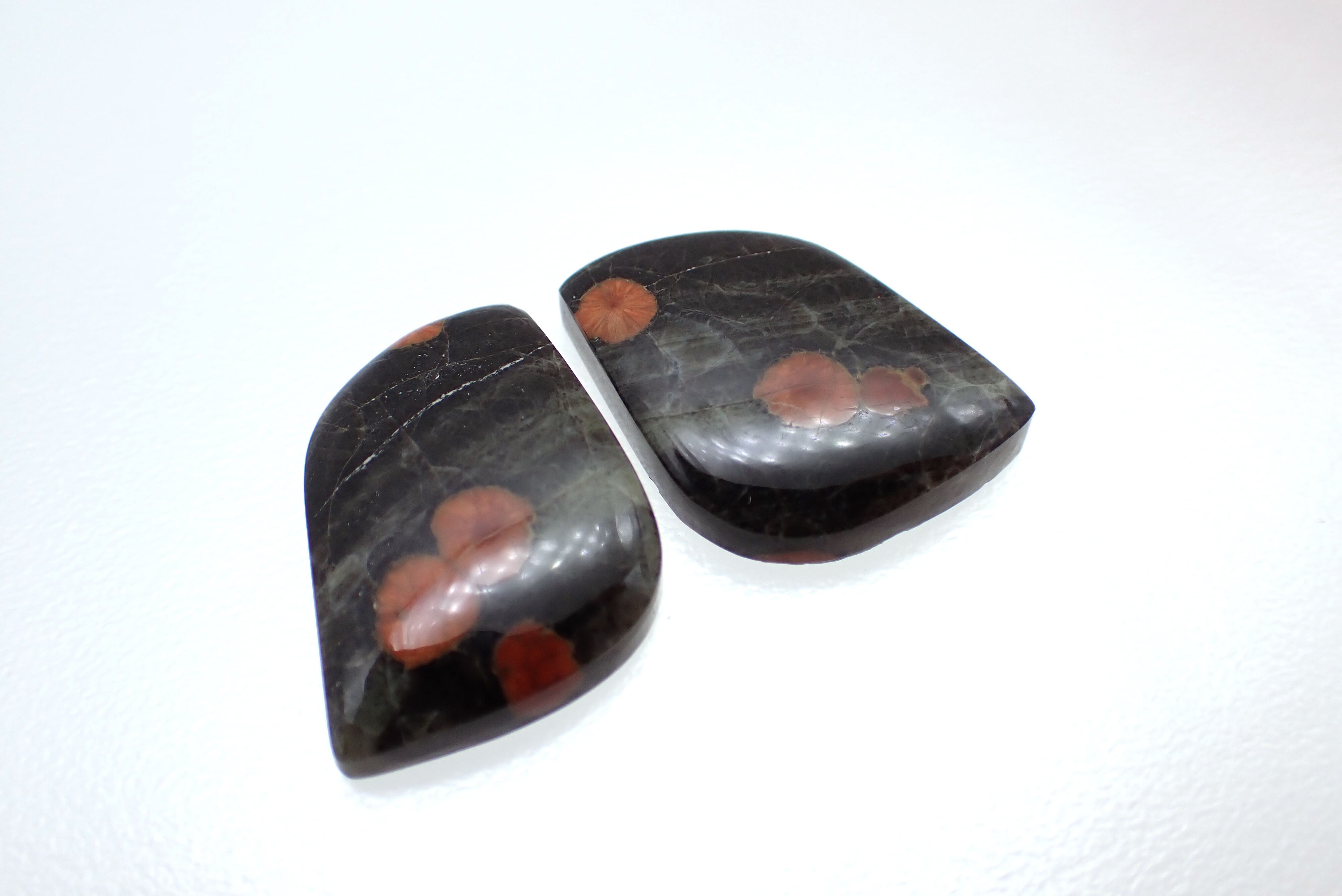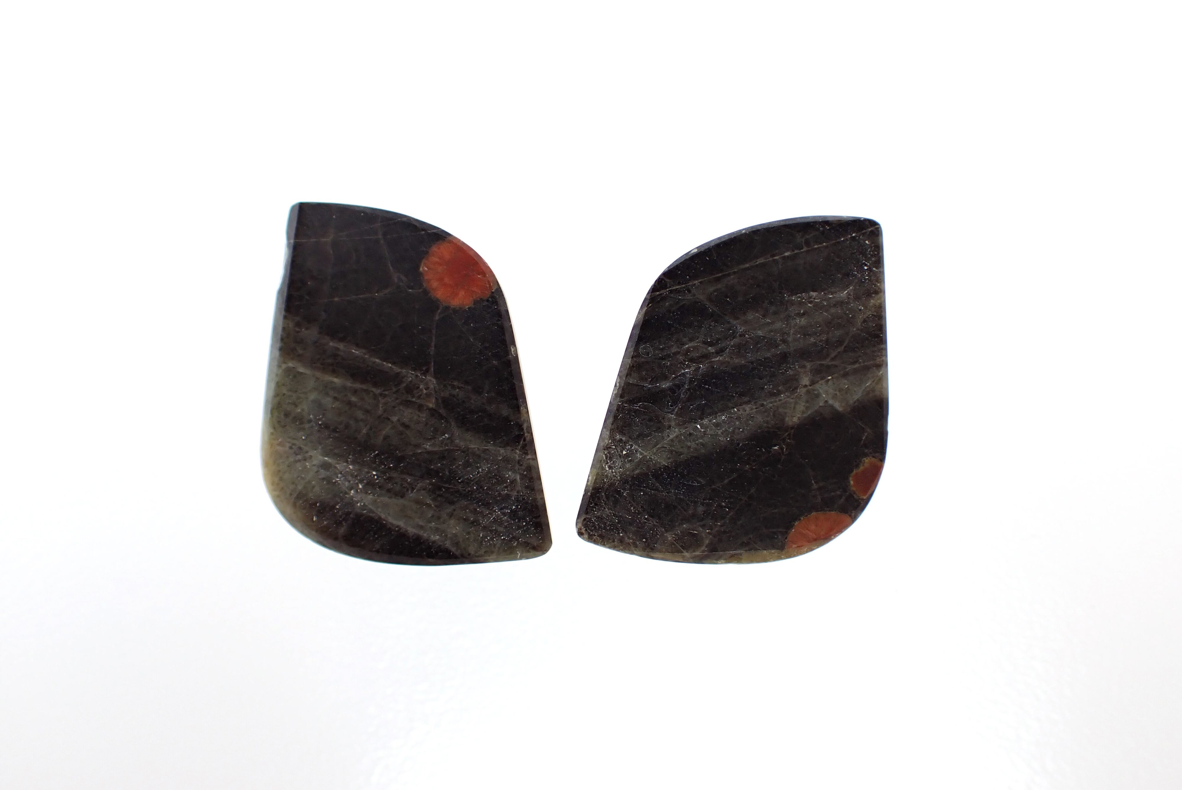 渋い色味の中にピーナッツの断面のような模様が浮かび上がる珍しいもので、鑑賞用・イヤリング用どちらでも楽しんでいただけます。