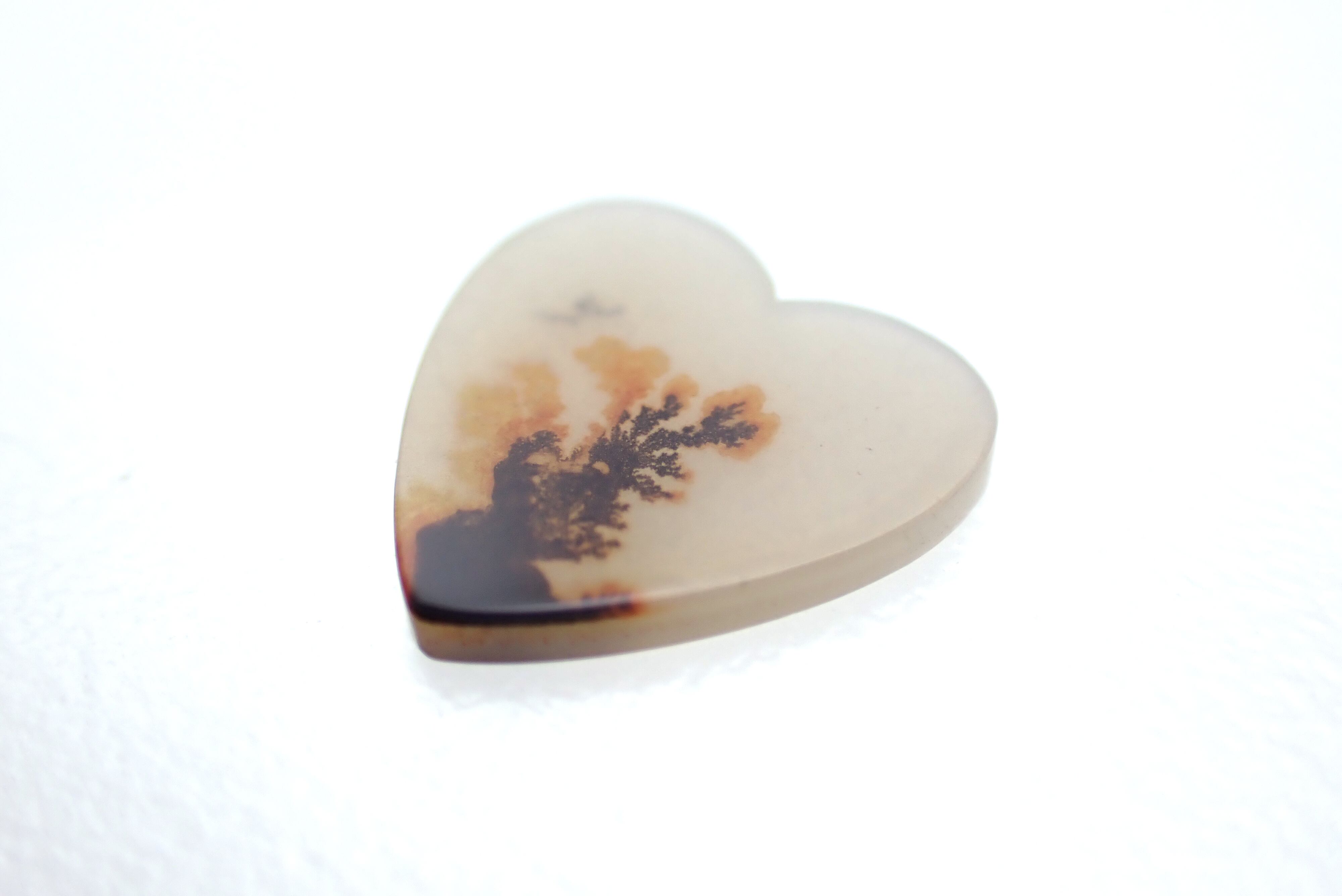はっきりしたシダ植物のようなモノから墨を垂らしたような濃いモノなど、一つとして同じ模様はない為、ついたくさん集めて眺めたくなってしまうような魅力のある石です。