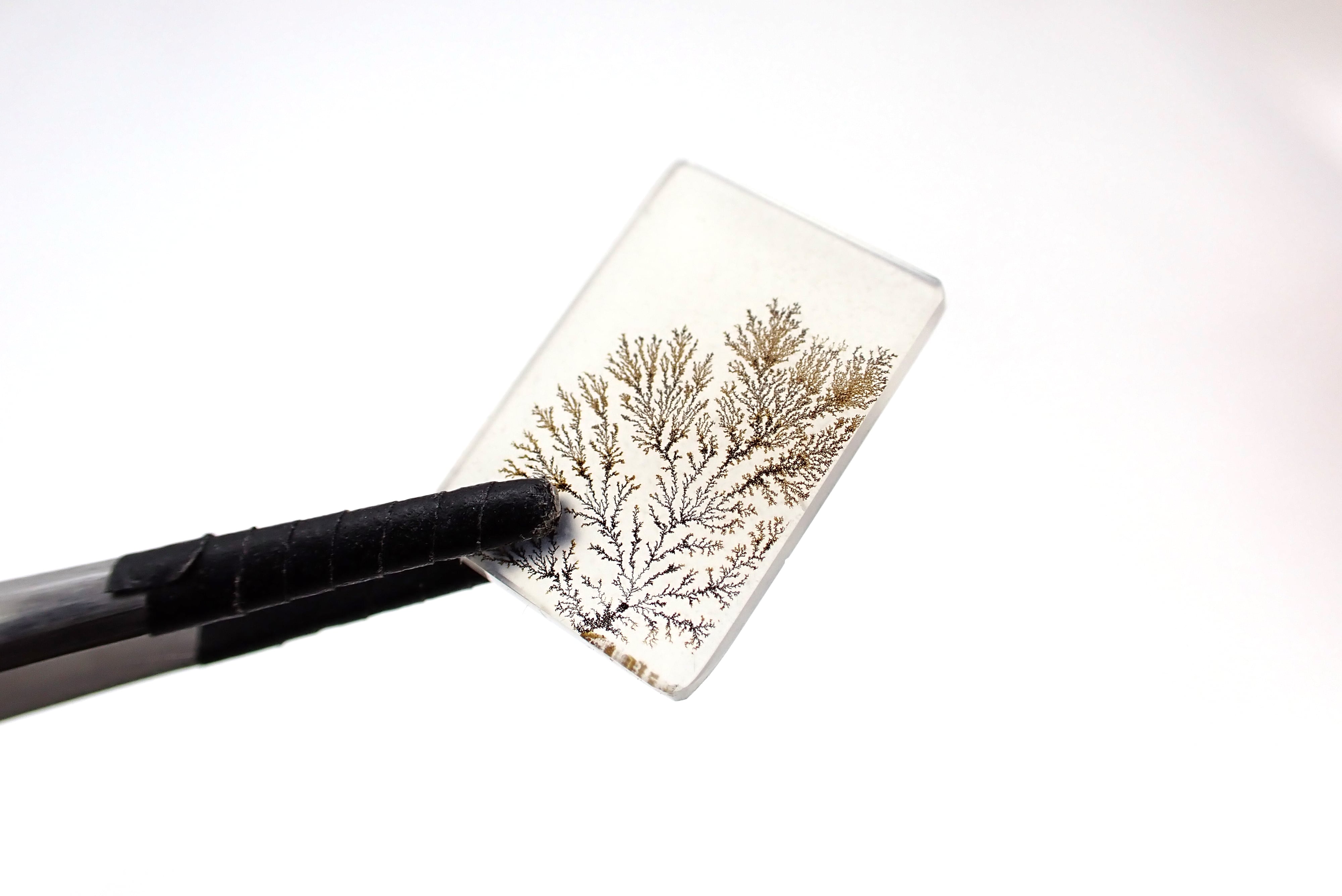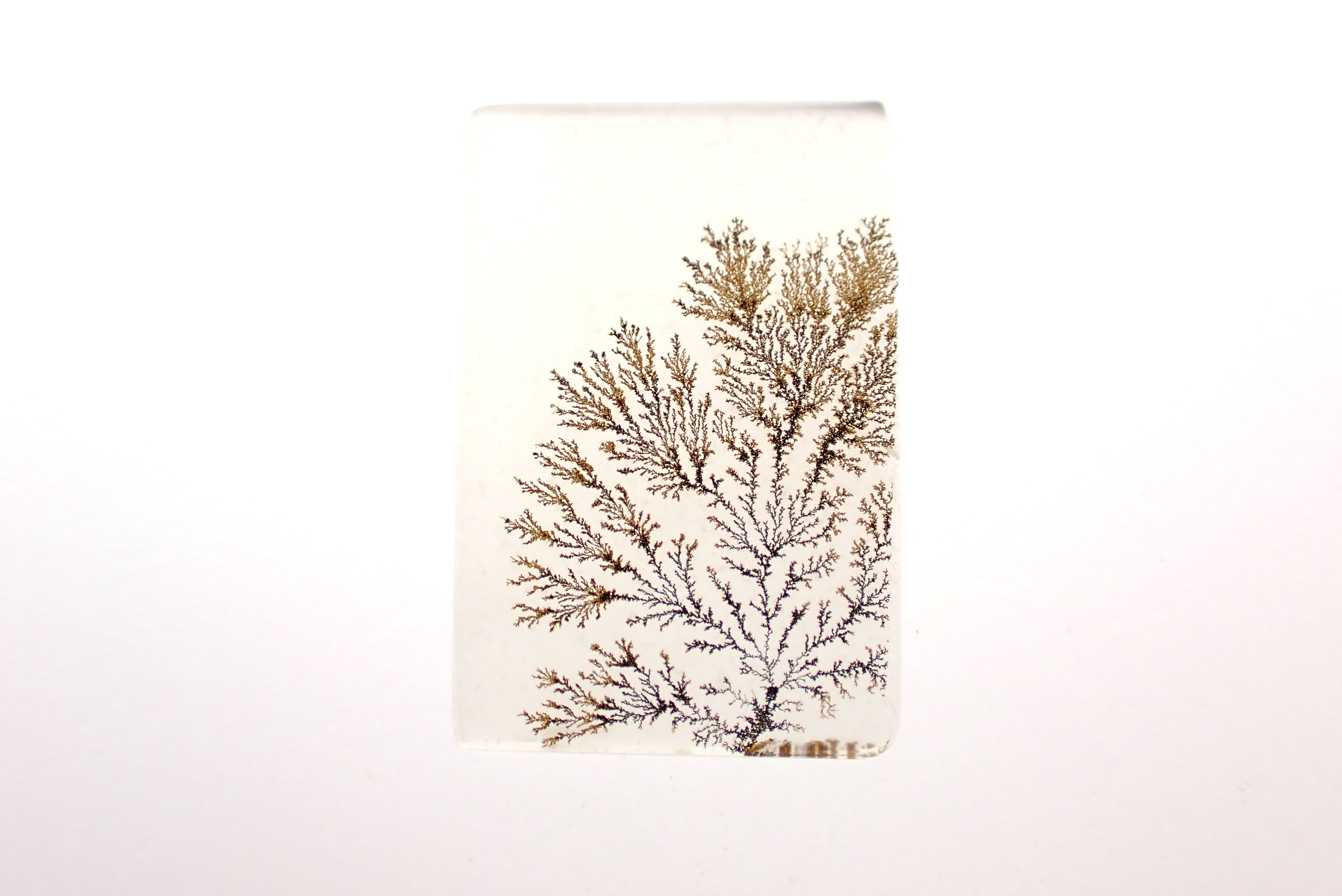 デンドライトは本物の植物ではなく、水晶などの欠けた部分に酸化マンガンや酸化鉄などが入り込んだことによって、樹枝のような模様が現われたものです。
