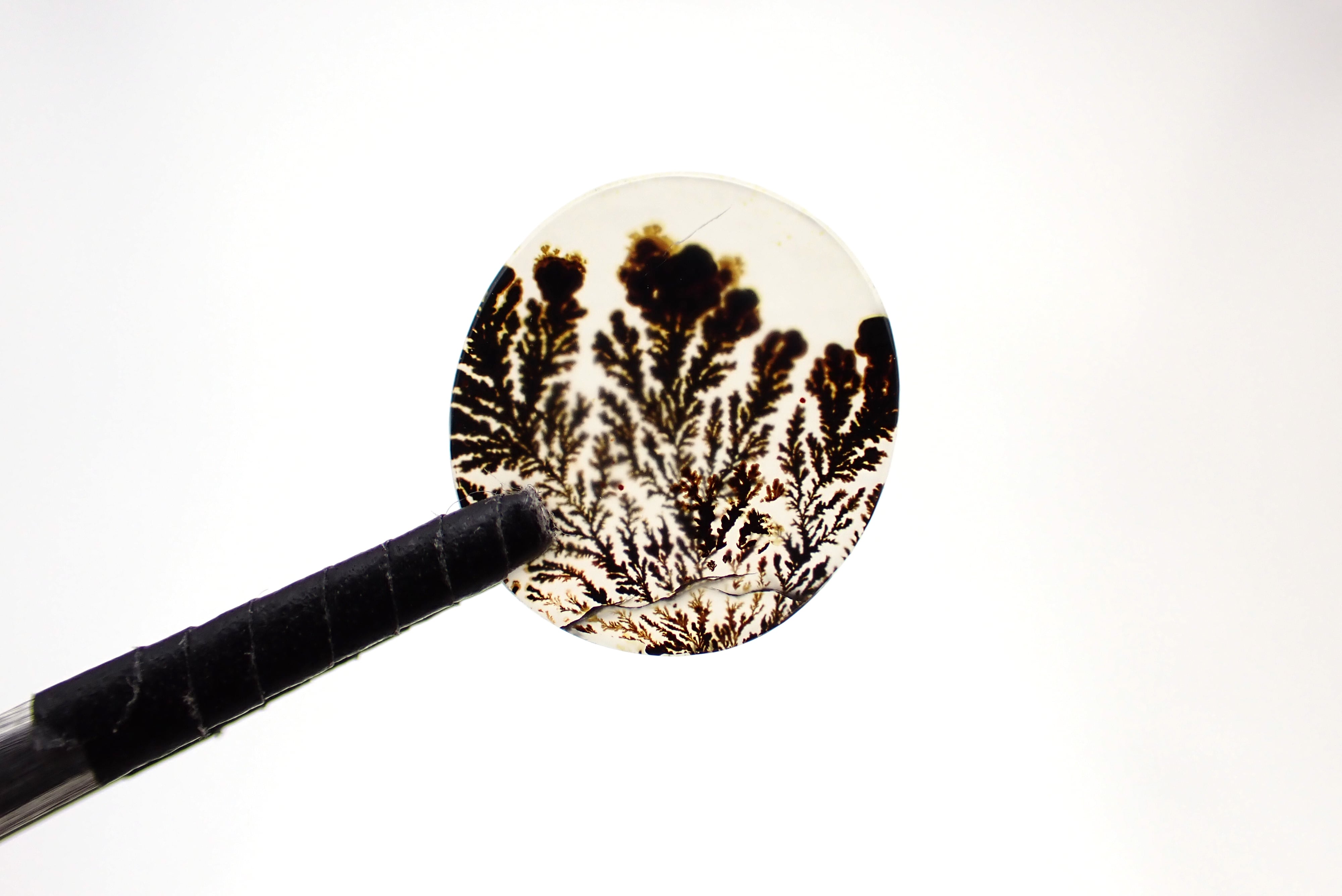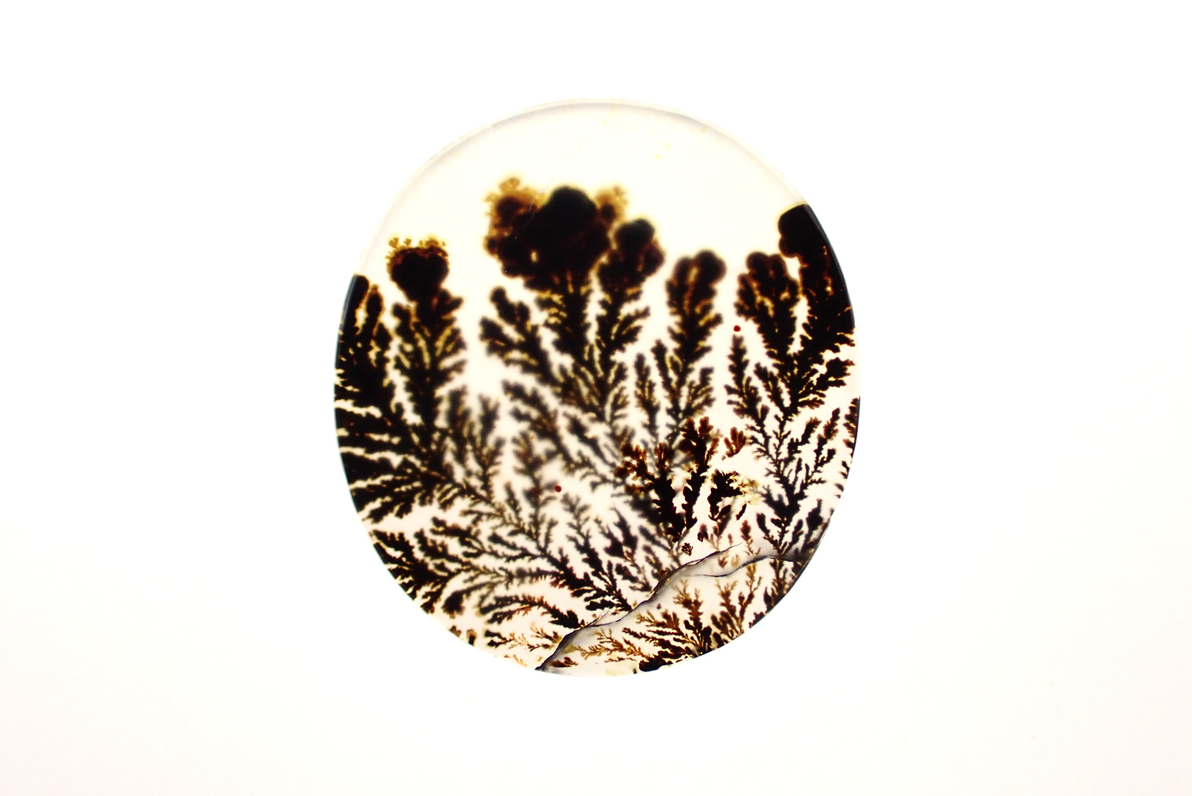 デンドライトは本物の植物ではなく、水晶などの欠けた部分に酸化マンガンや酸化鉄などが入り込んだことによって、樹枝のような模様が現われたものです。