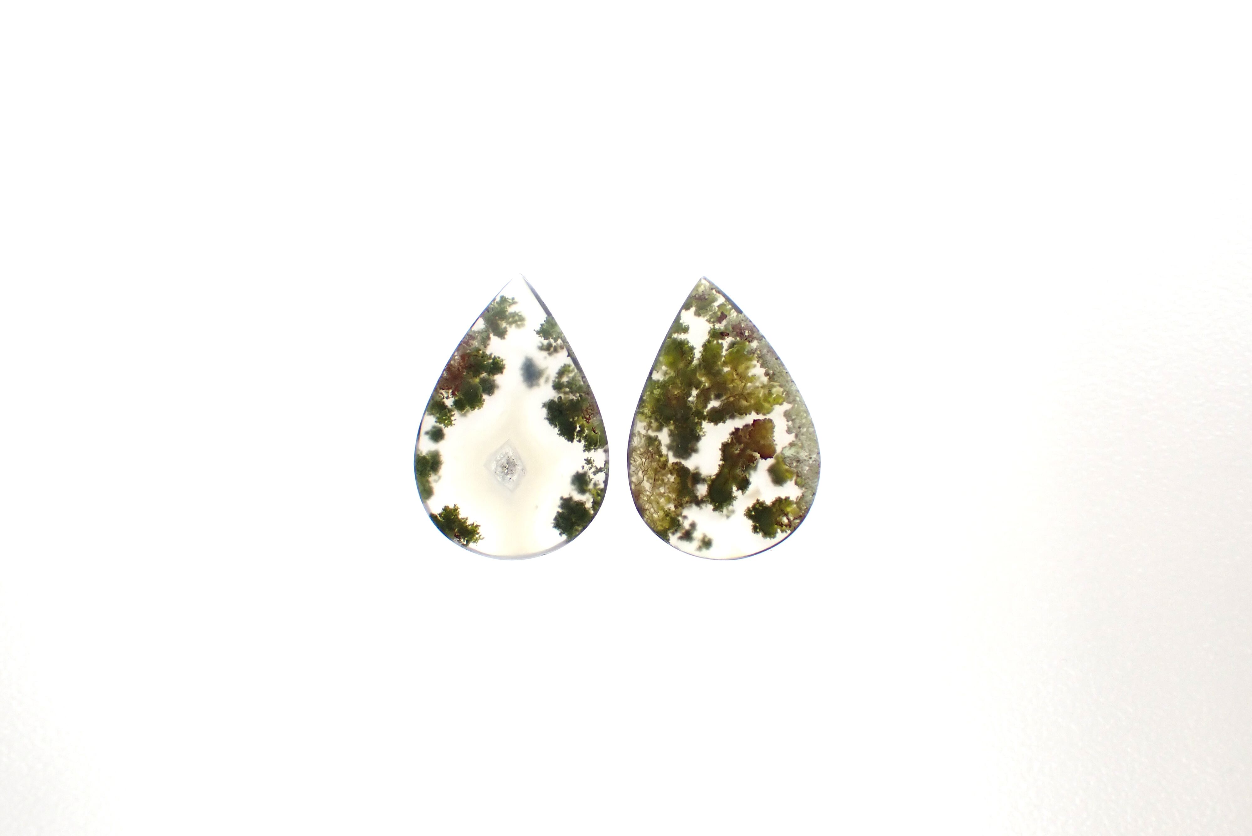 こちらのモスアゲートはイヤリングにぴったりな小ぶりなペアセット。
