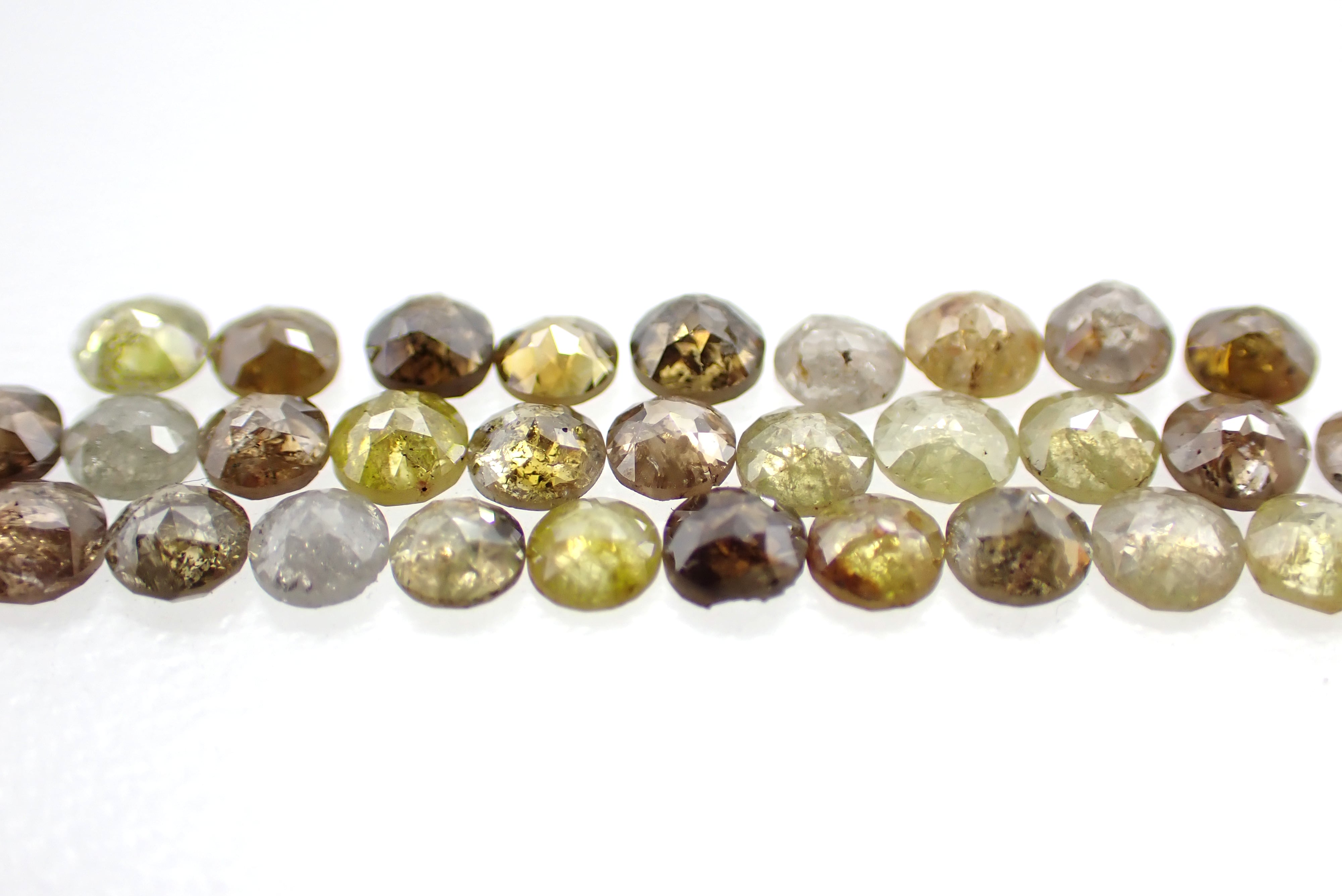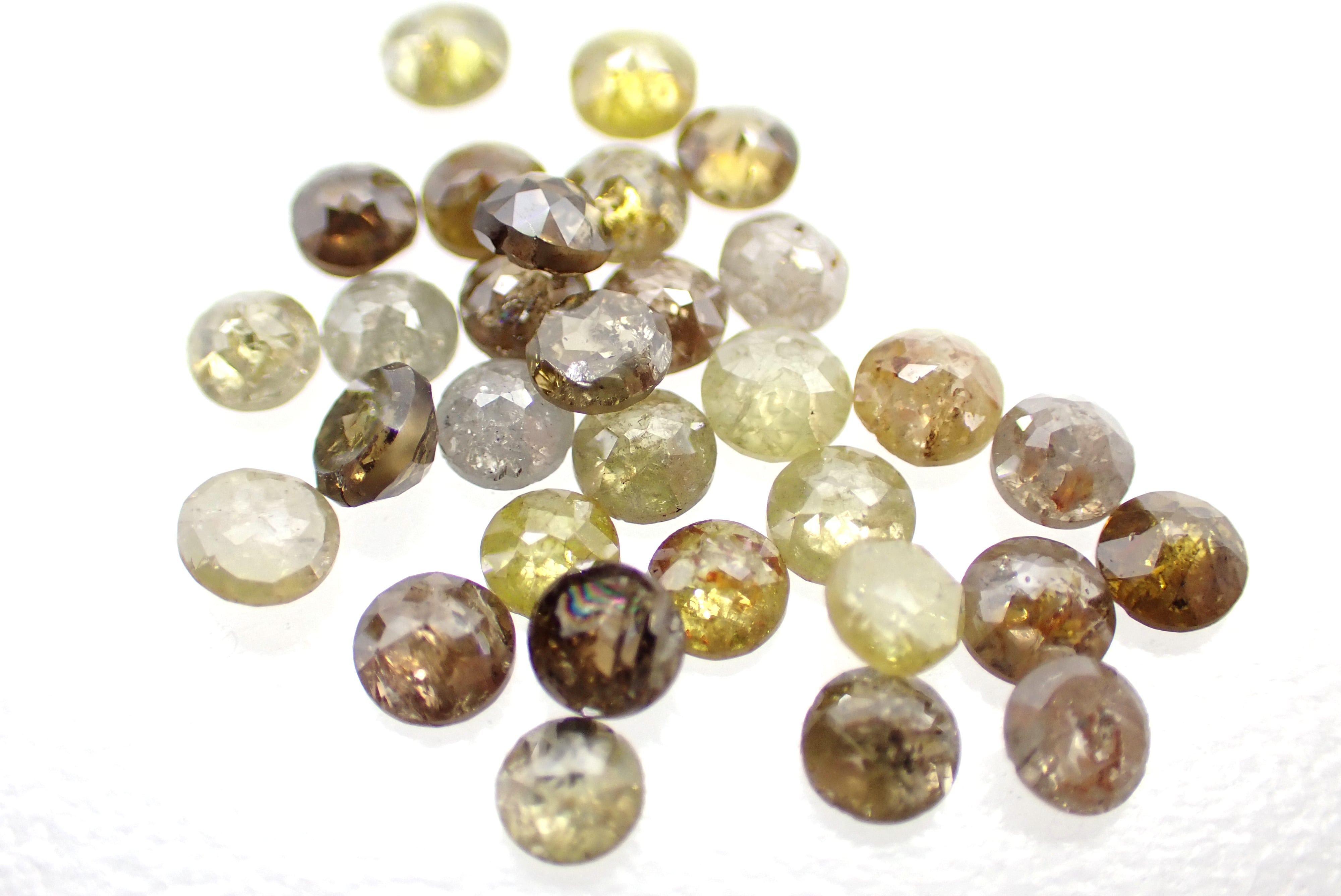 MATERIALS+が取り扱うダイヤモンドは、メジャーな無色透明のブリリアントカットではなく、主に黄色~グレーの自然な色合いのローズカットダイヤモンドです。