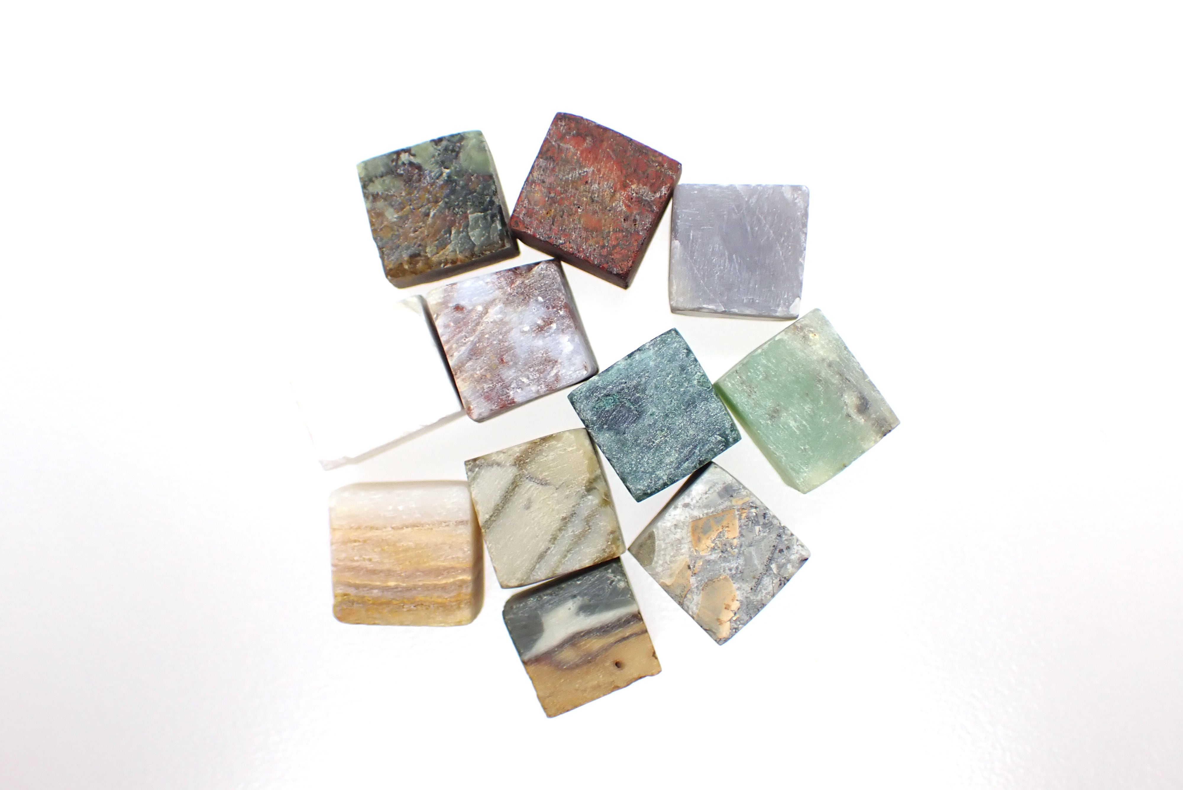 当店の扱うジャスパー・アゲート系の石を1cm程度の立方体にカットしたもの。